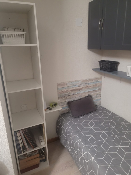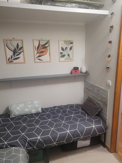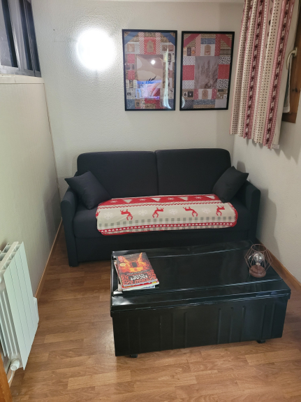 * ein Wohnzimmer mit einem Schlafsofa für 2 Personen (140cm), einer Aufbewahrungssäule, einer Aufbewahrungsbox, einem Flachbildfernseher (110cm), einem DVD/Blue-Ray-Player, Büchern, Comics, Spielen...