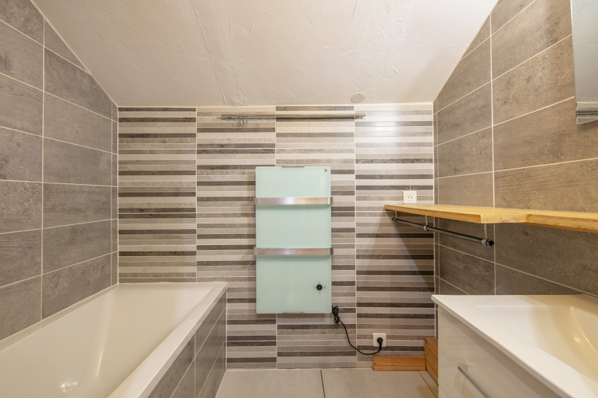 Zwei Badezimmer (eine Dusche und eine Badewanne) und eine separate Toilette.