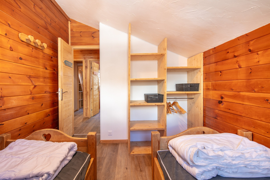 Ein Schlafzimmer mit 2 Einzelbetten (Piste Bleue).