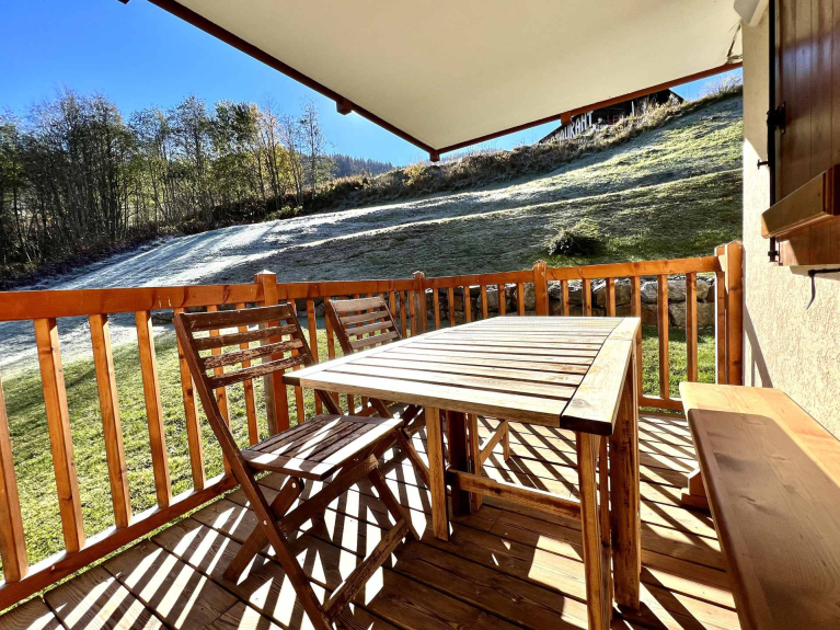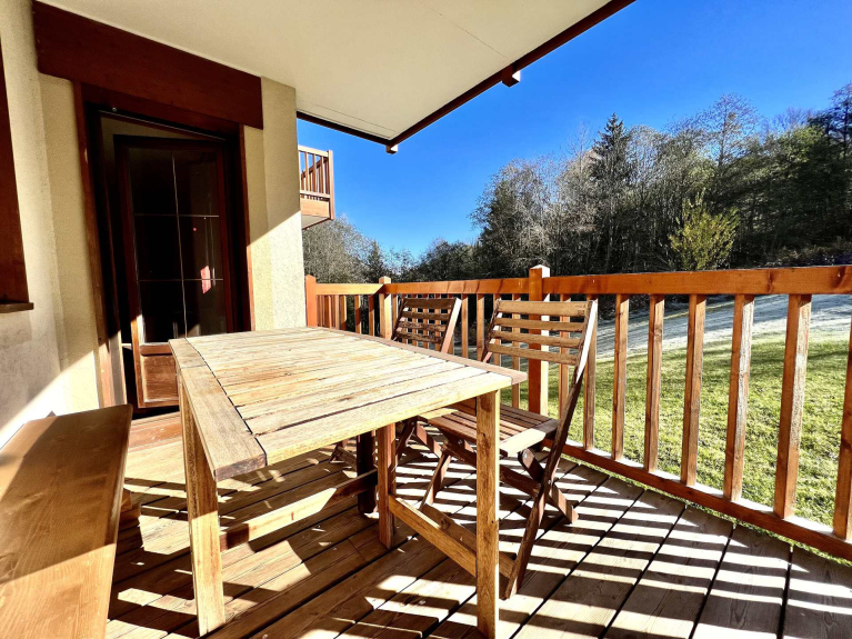 Wohnung von 42m², am Fuße der Pisten, im ersten Stock der Residenz mit einer Süd-Ost-Terrasse, und Blick auf die Berge.