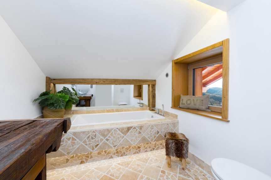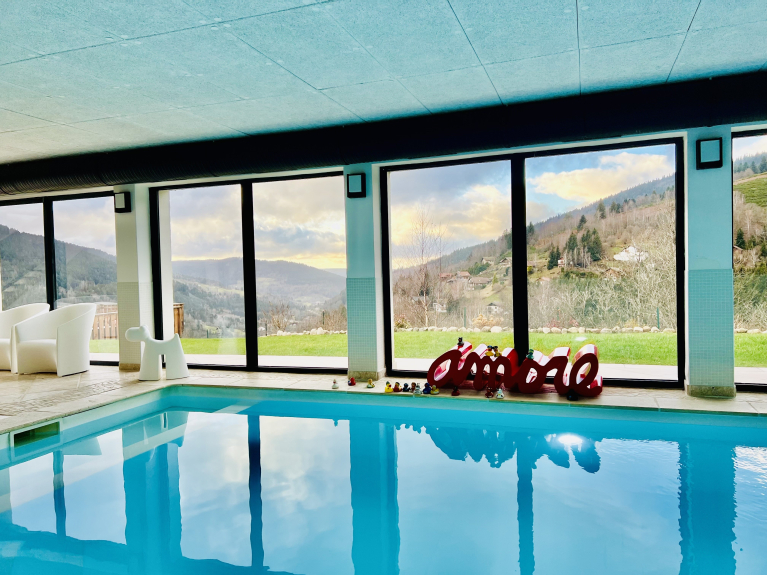 Mehrere Terrassen mit einem atemberaubenden Blick auf das Tal und das Skigebiet, ein privates Hallenbad mit ganzjährig auf 30° beheiztem Quellwasser (Salzbad), ein Fitnessraum, eine finnische Sauna, 5 Zimmer/Suiten von 25 bis 50 m², alle mit eigenem Bad, überdachter Grillplatz, Ski- und Fahrradraum, all das sind Vorzüge, an die wir gedacht haben, damit Sie einen Aufenthalt in aller Ruhe verbringen können