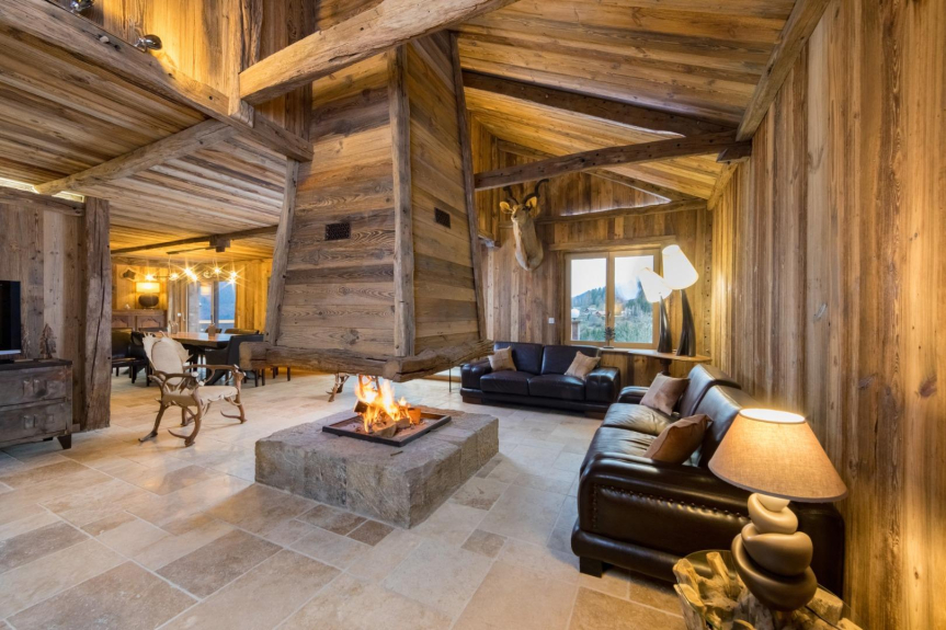 Der große zentrale Kamin sorgt für angenehme Abende, an denen man sich gerne am Feuer trifft.