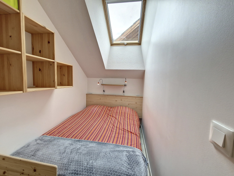 Schlafzimmer im Mezzanin: 1 Bett 140 x 190 mit Bettdecke