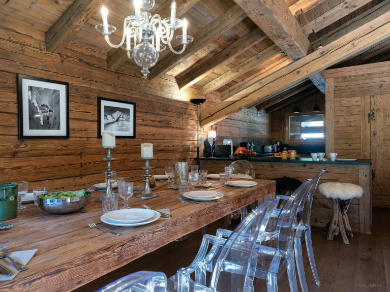 Die elegante, von den Savoyarden inspirierte Einrichtung wurde so konzipiert, dass 12 Personen bequem untergebracht werden können, wobei bei Bedarf auch die Möglichkeit besteht, sich zurückzuziehen. Diese Liebe zum Detail und die ideale Lage in der Nähe der Pisten und des Dorfes La Clusaz sorgen für einen unvergesslichen Aufenthalt im Herzen der Aravis.