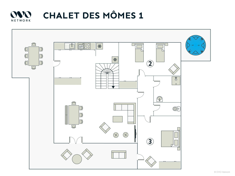 Mit einer Kapazität von 8 Personen ist das Chalet des Mômes auf 3 Etagen verteilt.