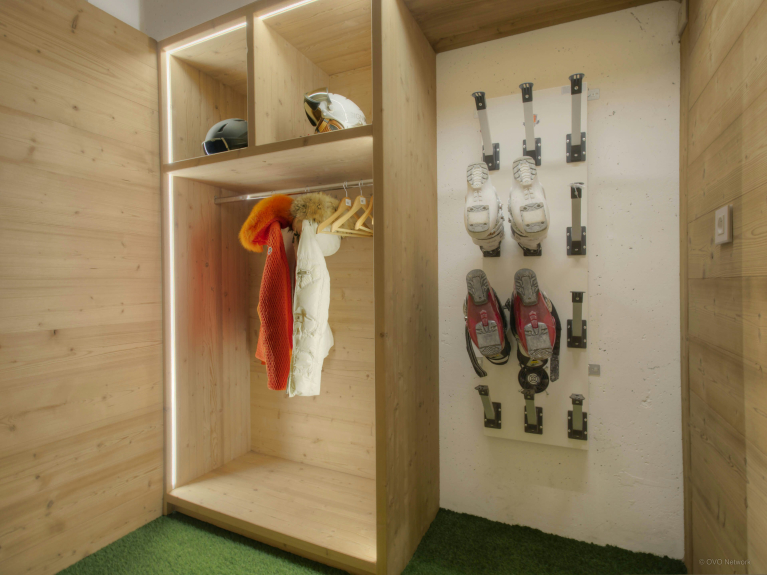Zur Wohnung gehören auch eine Garage, ein Skiraum mit Schuhtrockner und ein Abstellraum im Keller.