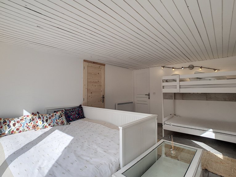 Schlafzimmer 3 : 2 Etagenbetten 90x190 mit Bettdecken und 1 Doppelschlafcouch 80x200 mit Bettdecke (für 4 Personen)