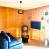 Das Wohnzimmer hat ein Schlafsofa (für 2 Personen), einen Fernseher, ein Esszimmer und eine Kochnische.