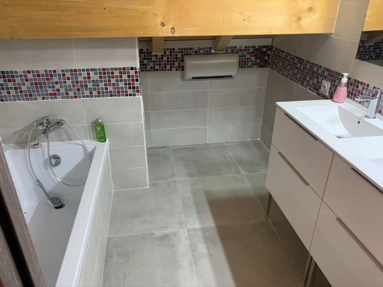 Sie haben Zugang zu unserer großen Terrasse mit Jacuzzi und Panoramablick auf die Berge.