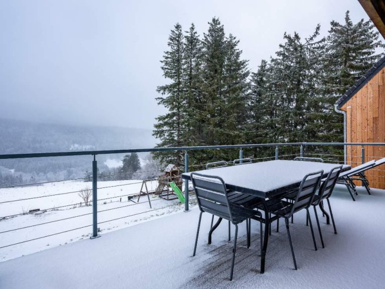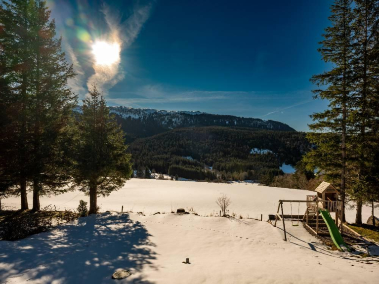Das Ganze auf einem 1200m² großen Privatgrundstück mit Terrasse und Kinderspielplatz.