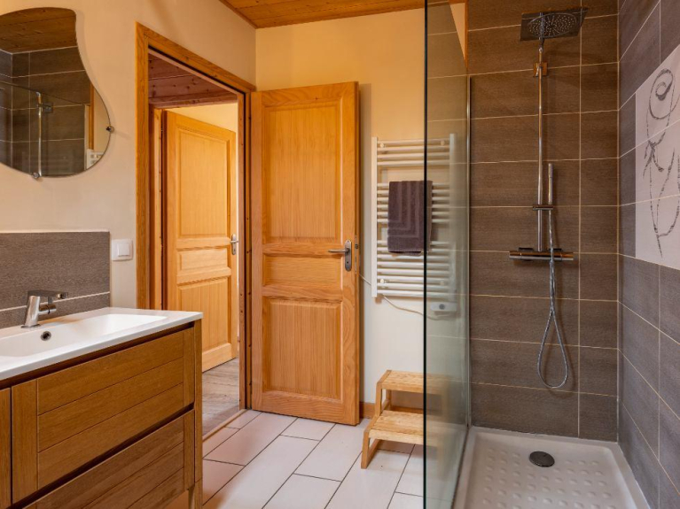Es besteht aus einem großen Eingangsbereich, in dem Sie Ihre Geräte aufbewahren können, einem 40 m² großen Wohnraum mit Einbauküche, 3 Schlafzimmern, 2 Toiletten und einem Duschraum. Begleitet von einem 20m² großen Wellnessbereich mit Jacuzzi, Sauna und Dampfbad.