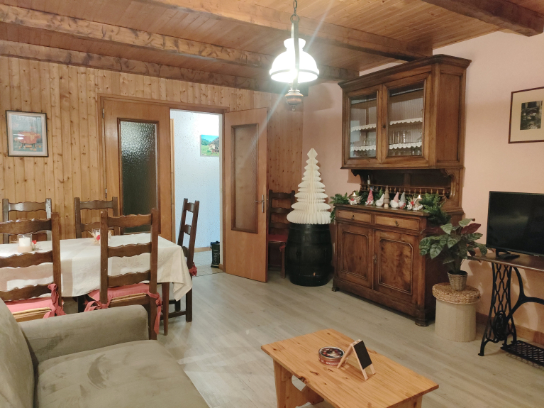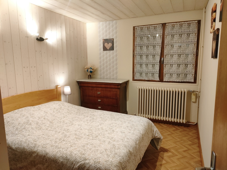 Geräumige Wohnung im Gartengeschoss. Zwei Schlafzimmer und ein Wohn- und Esszimmer, das mit einem Schlafsofa ausgestattet ist, bieten Platz für bis zu 6 Personen. Im Winter ist der nächste Skiort weniger als 3 km entfernt und das große Skigebiet Espace Diamant ist in weniger als 5 km erreichbar. Im Sommer sind zahlreiche Spaziergänge möglich und der Garten ist für einen Moment des Spielens oder Entspannens zugänglich.