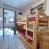 - Schlafplätze: Ein Schlafzimmer mit Doppelbett (140), Bergecke mit zwei Einzelstockbetten (2*90), Wohnzimmer mit Schlafsofa (140). Bettzeug mit Daunendecken ausgestattet.