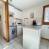 - Zum Wohnzimmer hin offene Küche: 4-flammige Glaskeramikplatte, 1 Mikrowellen-Kombiofen, Kombikühlschrank, Geschirrspüler, Waschmaschine.