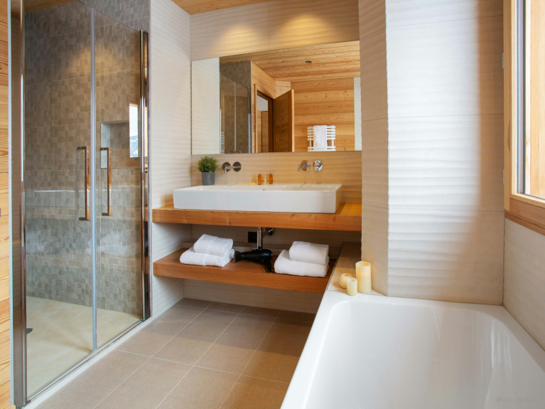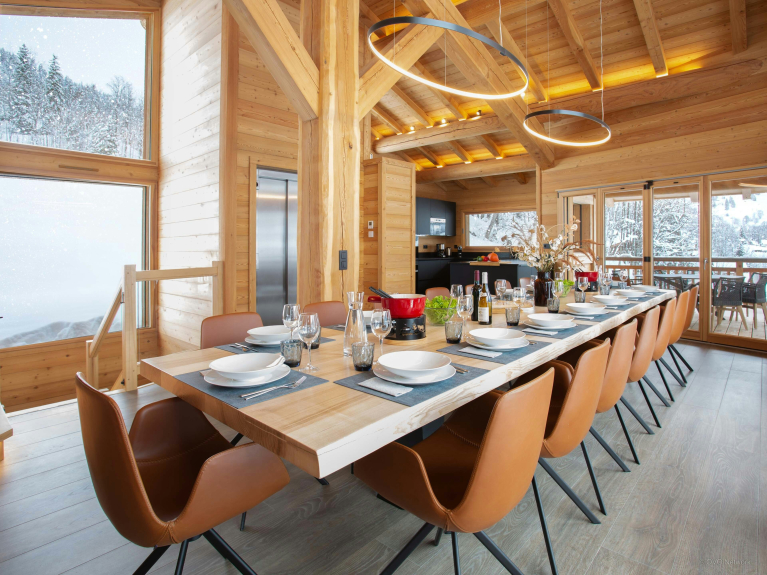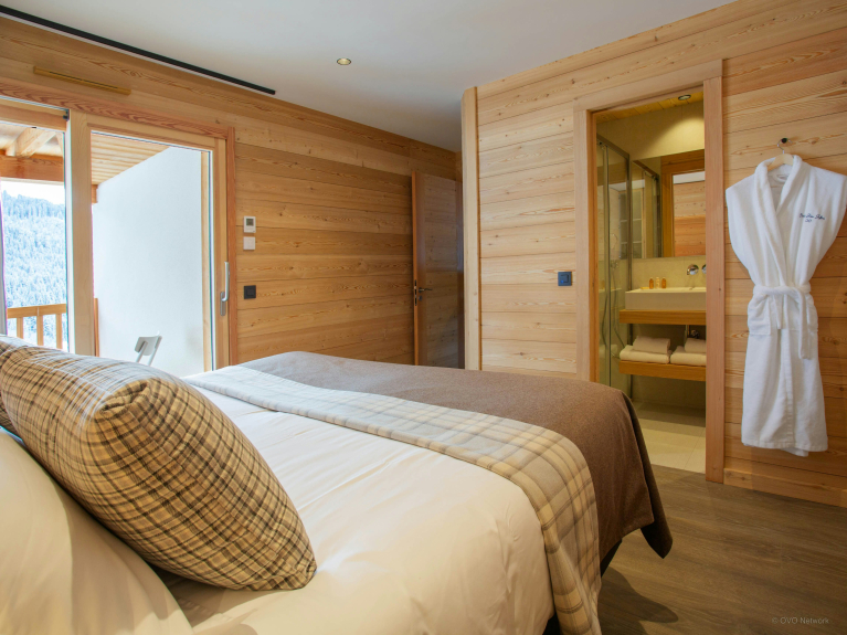 Wir lieben den unglaublichen Ausblick von der Vorderseite des Chalets, der sich vom Beauregard-Plateau über die Fernuy-Piste bis nach La Balme erstreckt. Sie können sie sogar in der Badewanne genießen.