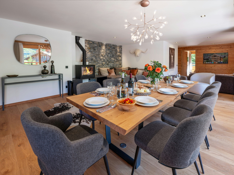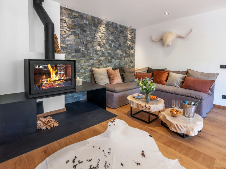 Die gesamte Wohnung wurde kürzlich renoviert und mit hochwertigen Annehmlichkeiten ausgestattet. Sie finden hier eine offene, voll ausgestattete Küche, einen großen Esstisch mit Blick auf die Pisten und zwei gemütliche Sitzecken vor dem Kamin und dem Fernseher.