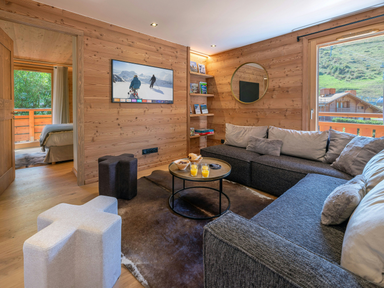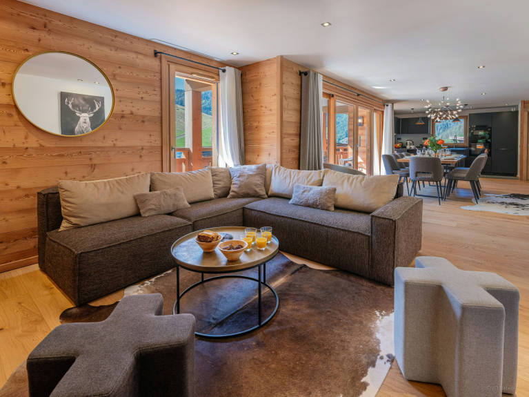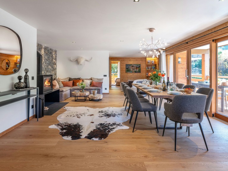 Le Grand Bossonnet ist ein luxuriöses Apartment für 10 Urlauber mit 4 Schlafzimmern und 3 Badezimmern. Es genießt eine traumhafte Lage, direkt gegenüber dem Sessellift von La Clusaz und nur wenige Gehminuten von allen Annehmlichkeiten des Ortes entfernt.