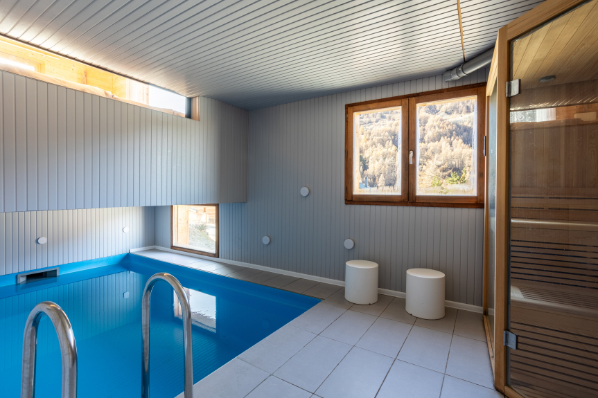 - sein kleiner SCHWIMMBAD und seine SAUNA, um sich nach einem sportlichen Tag zu entspannen.
