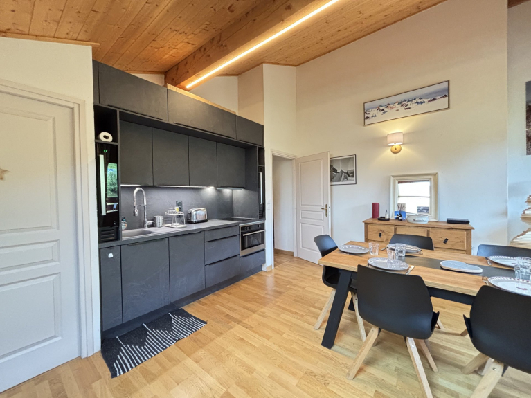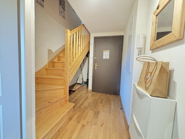 In einer Residenz am Fuße der Pisten des Espace Diamant, charmante Maisonettewohnung mit einem großen Balkon in Südlage und Blick auf die Berge.