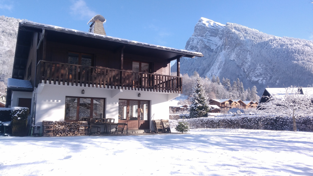 Im historischen Dorf Samoëns, 5 Gehminuten von allen Aktivitäten entfernt, bietet dieses von natürlichem Licht durchflutete Familienchalet einen atemberaubenden Blick auf die Berge.