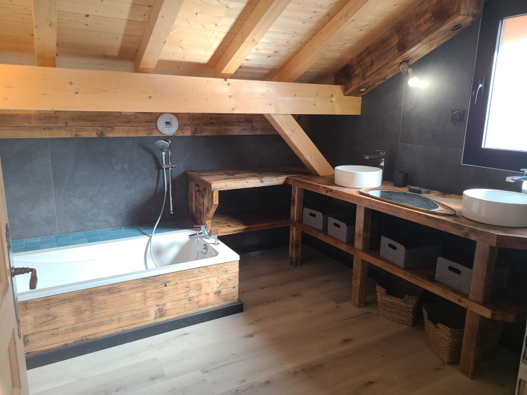Alles sehr gut ausgestattet mit Fondue-, Raclette- und Pierradesets, Filter- und Nespresso-Kaffeemaschine, Gasgrill, Wifi und Jacuzzi auf der Terrasse.