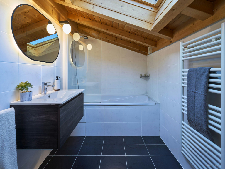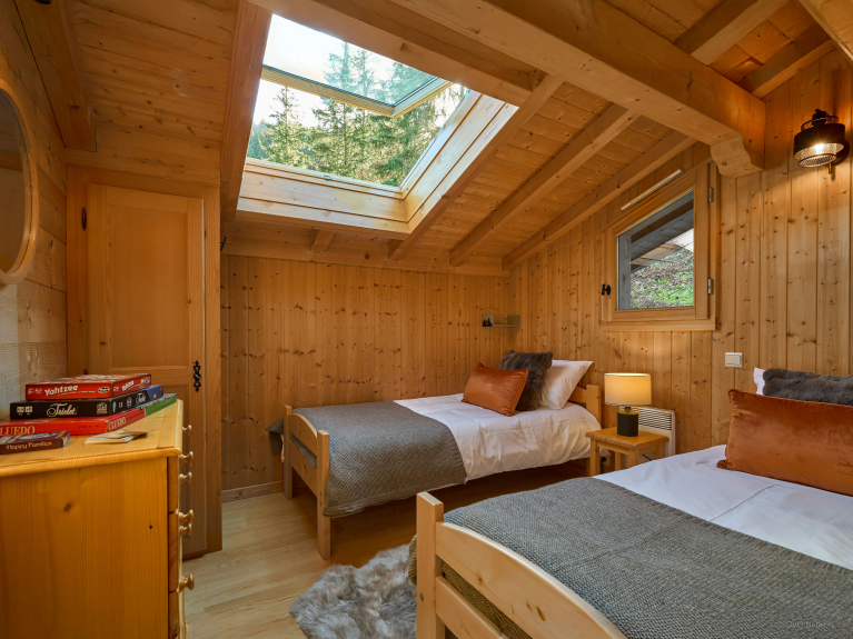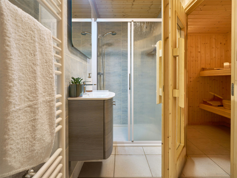 Mit seiner herrlichen alpinen Umgebung, einem Whirlpool, einer Sauna und mehreren geräumigen Terrassen ist dieses Chalet ein wunderbarer Ausgangspunkt, um diese Region zu erkunden. Es gibt zwei Doppelzimmer mit Balkon, ein drittes Zimmer mit angrenzendem Duschbad und ein Zimmer mit zwei Einzelbetten. Ein Badezimmer befindet sich im Obergeschoss und eine weitere Dusche neben der Sauna im Gartengeschoss.