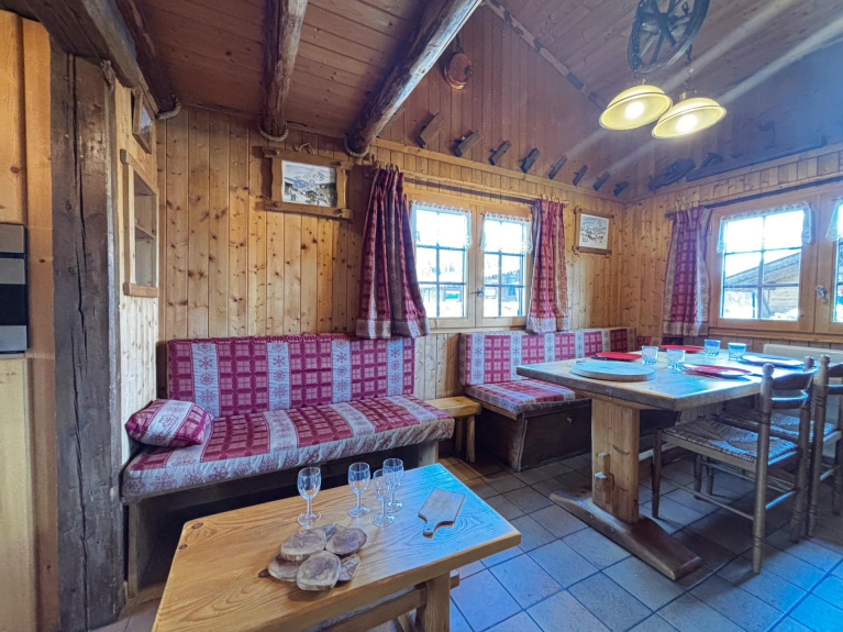 Ein typisches Chalet, im Herzen des Dorfes und in der Nähe der Pisten, ein idealer Ort, um sich zu zweit, mit der Familie oder mit Freunden zu treffen.