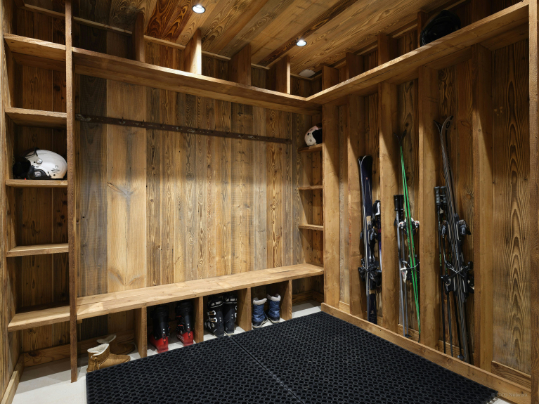 Gleich am Eingang befindet sich der Skiraum, in dem man es sich nach der Rückkehr von den Aktivitäten gemütlich machen kann. Dazu gehört auch ein sehr funktioneller Waschraum mit Waschmaschine und Trockner.