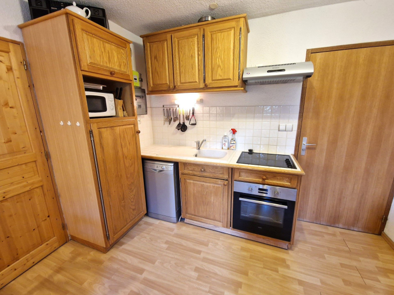 - Kochecke mit Kühlschrank, Backofen, Geschirrspüler, Mikrowelle.