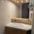 Badezimmer mit Badewanne/Dusche, Handtuchtrockner, Haartrockner.