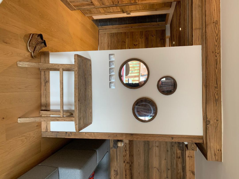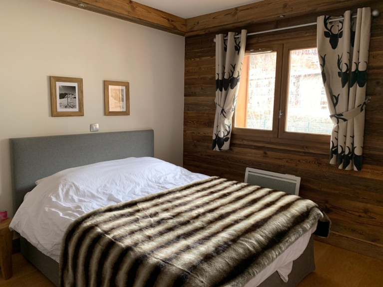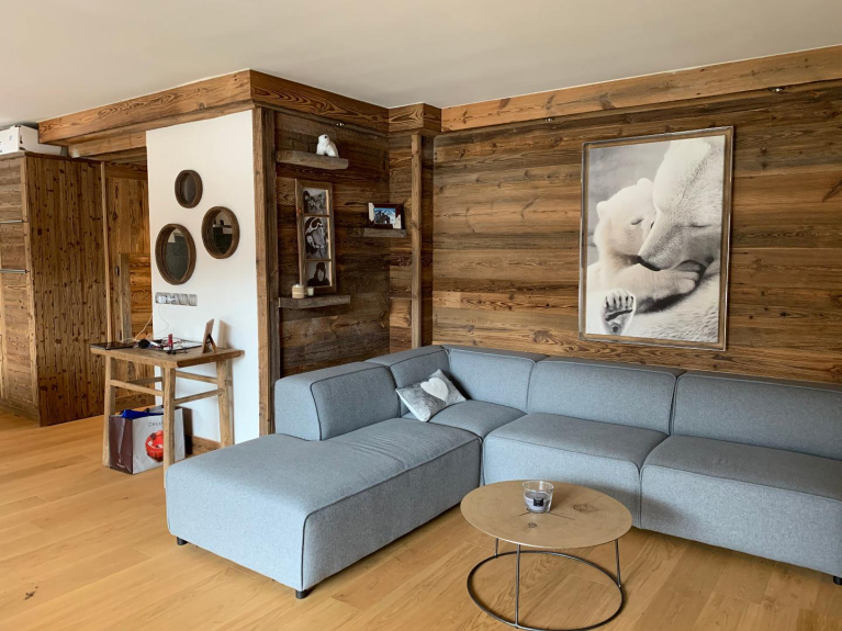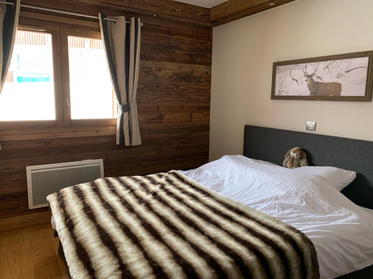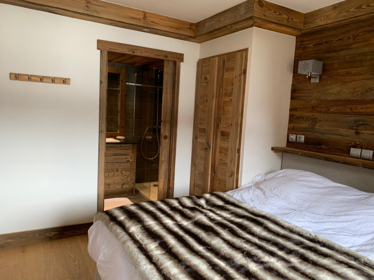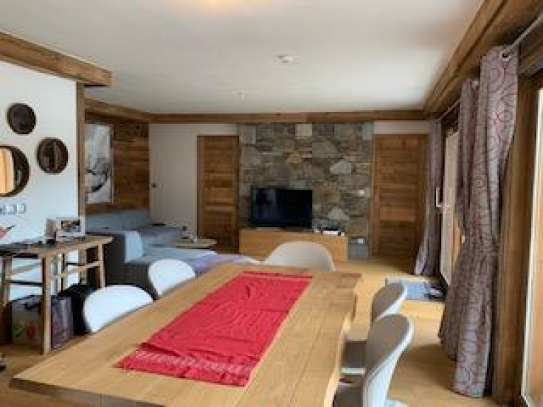 Tastefully furnished with beautiful materials (old wood and stones of Megève), the apartment, with an area of 85 m² has 3 double bedrooms with a bathroom / shower for each, a large living room of 36 m², a beautiful terrace equipped with 16m², 2 covered parking spaces and 2 cellars and 2 ski lockers.