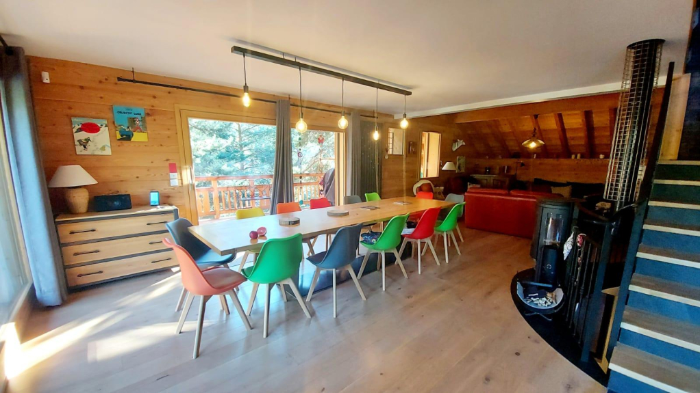 Superb contemporary chalet of 240m2, which can accommodate 13 people. Fully equipped and great amenities: wood stove, beds and cleaning included, shoe warmer, washing machine, dryer, Nespresso coffee maker, wifi, etc.