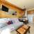 *KITCHEN open on the living room: ceramic hobs, oven, fridge, microwave oven.