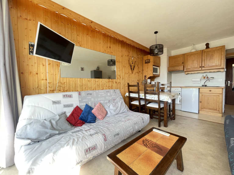 OUR ADVICE: Very bright apartment thanks to a picture window. Balcony with a nice open view on the village and the valley. Ideal for a couple, or for a couple with children.