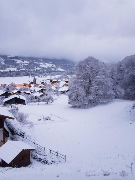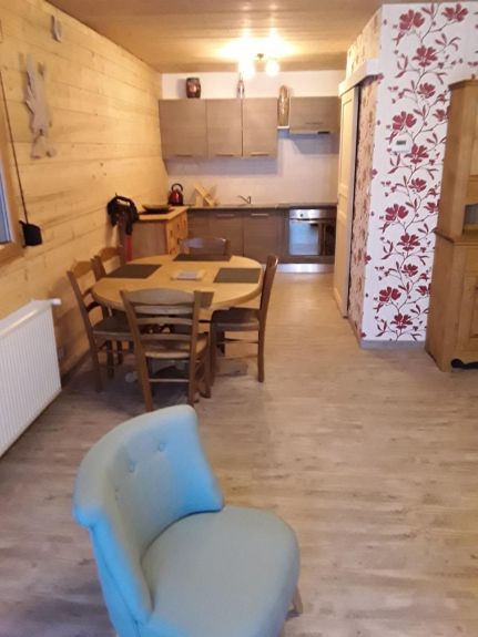 Apartment on the ground floor of a cottage located 300 meters walk from the village and 500 meters from the departure of the gondola available to ski if l snowage allows views of the mountains and quiet.