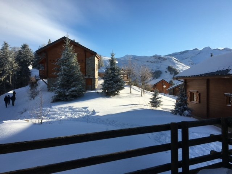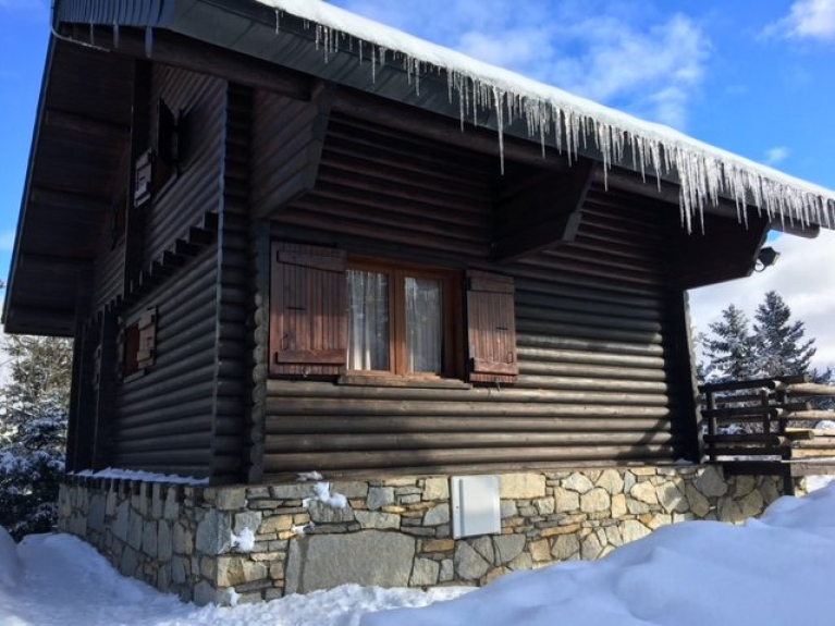 Beautiful log cabin on the top of the resort of Guzet, in a residential area.