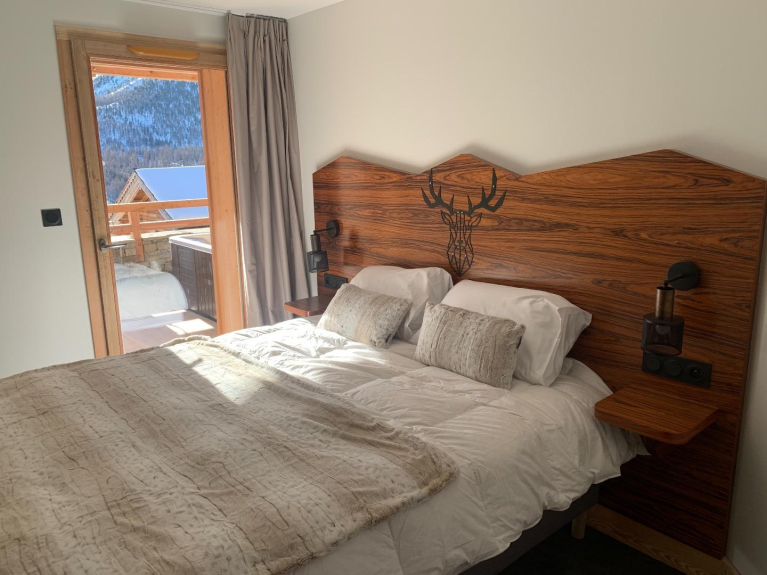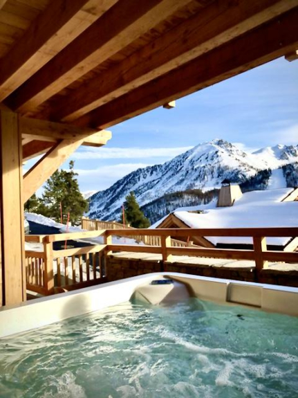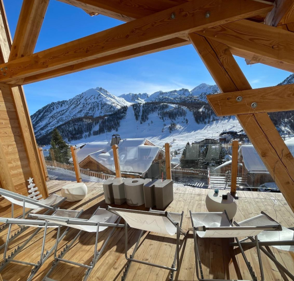The SPA is outside, sheltered, on the terrace of the first level, facing the ski slopes of Montgenèvre, in the Southern Alps, and accessible from the three suites.
