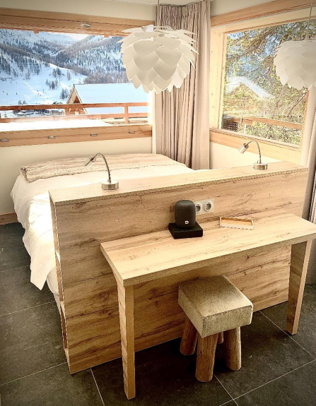 When you come on holiday to the mountains, you dream of living in osmosis with the landscape, of catching as much sunlight as possible, which you need so much in winter. We spend time looking out of the window at the spectacle of the falling snow.