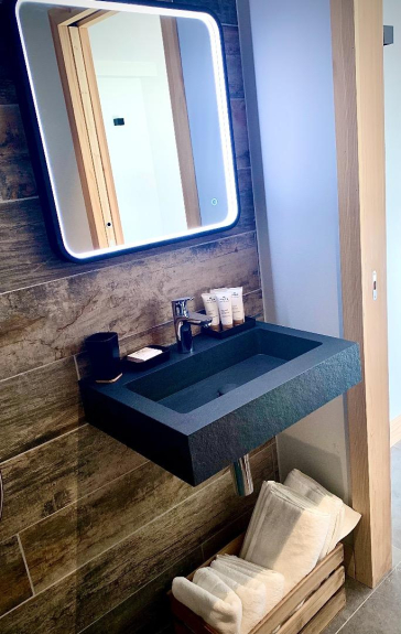 The bathrooms are furnished with NUXE products and BERGAN bath linen.