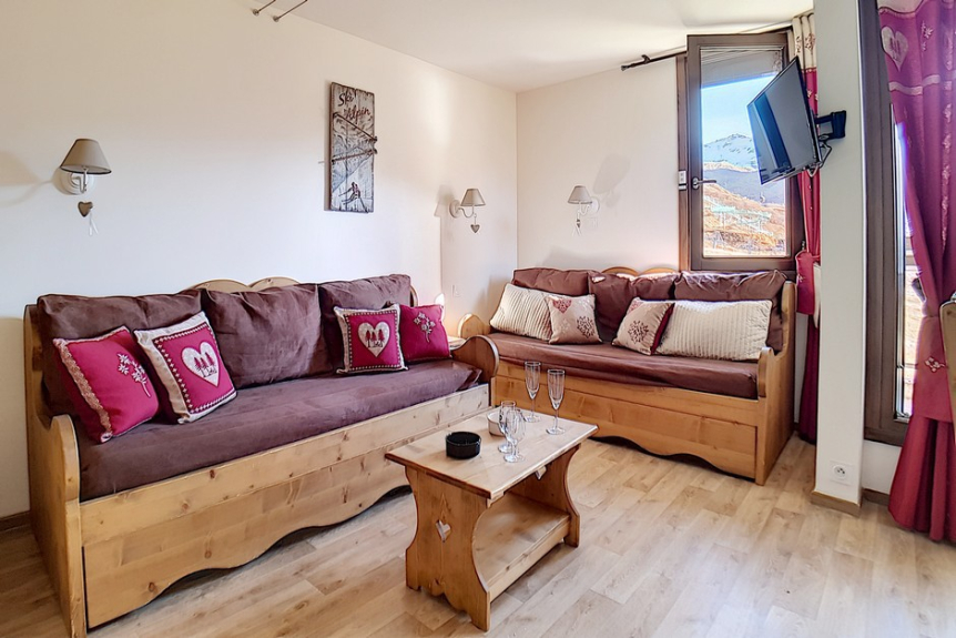 Living room : 2 single sofa beds and 1 pull-out single bed. Equipped with a television.