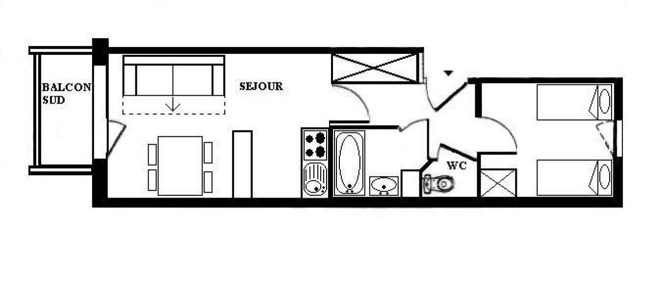 Apartment of 2 rooms of 30 m² for 4 persons.