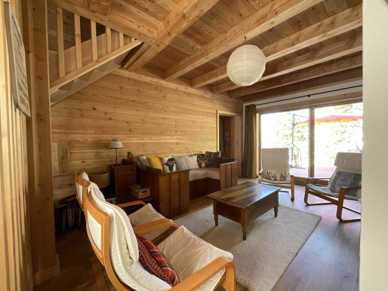 Now available for rental for 4 years, our Le Moral chalet has grown to offer up to 8 comfortable beds and a large living room (with fireplace) on the same level as a sunny terrace. The Chalmettes slopes and gondola are just opposite the chalet, as is the Durancia spa area for after-skiing, the tobogganing area in winter and the golf practice range in summer.