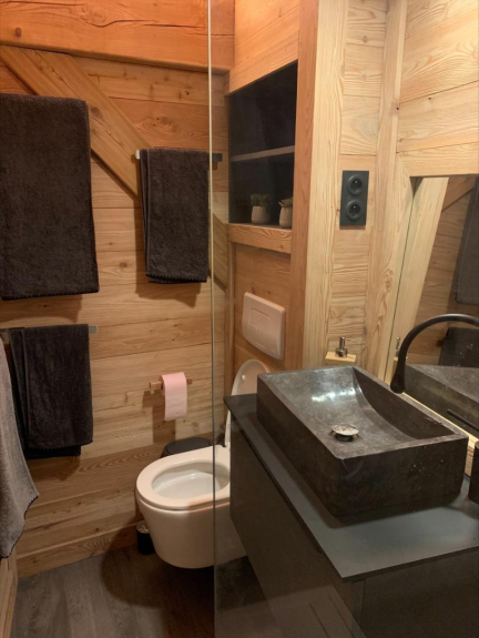 - 1 wellness area, including a 5-seater jacuzzi, 6-seater sauna, 90x120 Italian shower, as well as a massage table, will be available from February 1st 2022 within the chalet (extra charge)
