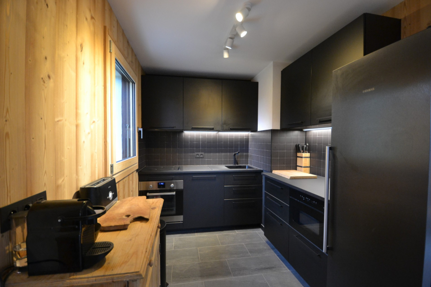 OUR OPINION: Pleasant holidays in this splendid chalet exposed full SOUTH with a sight to cut the breath! Quality services with new equipment in typical mountain style, the work will be completed this fall. It is located close to the Lachat mini-market and the Chez Maryse pizzeria.