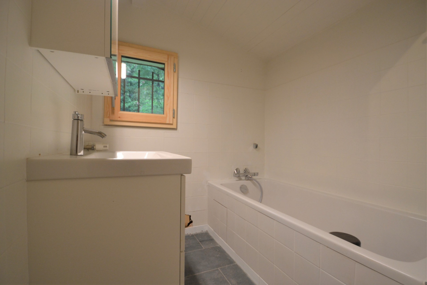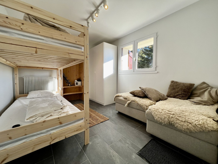 *On the GROUND FLOOR : a garage, a ski-room and bicycle room, a double bedroom (bed 160), a bedroom with bunk beds (2*90), a shower room and toilets.