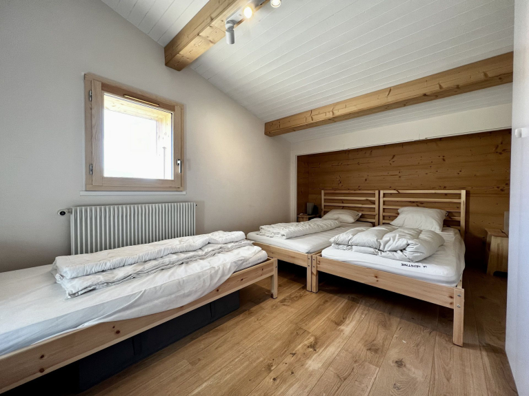 A few steps from the start of the Lachat slopes, facing the Espace Diamant mountains, this beautiful chalet is being renovated and has a large terrace. You will also appreciate its garden in summer and winter. This chalet is perfect for 8 to 10 people.