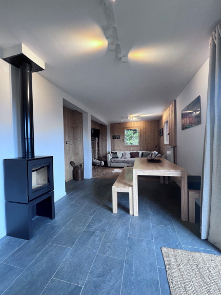 The chalet "La Léontine" is a beautiful, brand new, individual chalet, located 100m from the Espace Diamant slopes and 2.5 km from the ski school. In winter, a free ski bus passes 50m from the chalet. Village centre at 4km. In season, a mini-market is open next to the chalet.