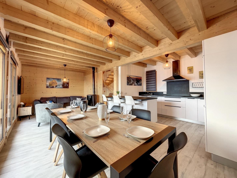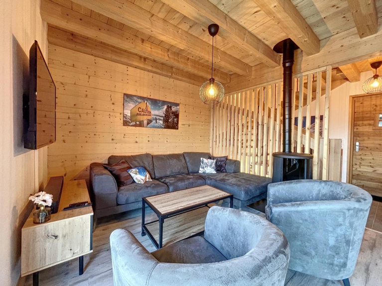 Equipped with underfloor heating, towel dryer and pellet stove for a warm atmosphere when returning from skiing.