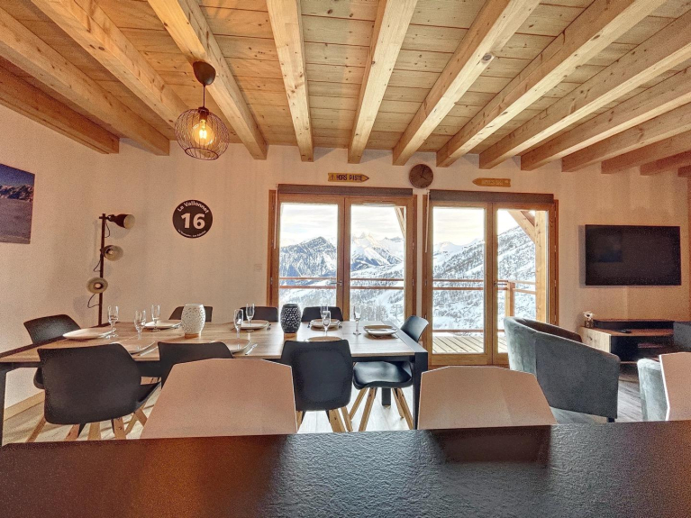 Real Savoyard chalet with skis, 109m² for 12 people on 3 floors with a breathtaking view on the Aiguilles d'Arves.