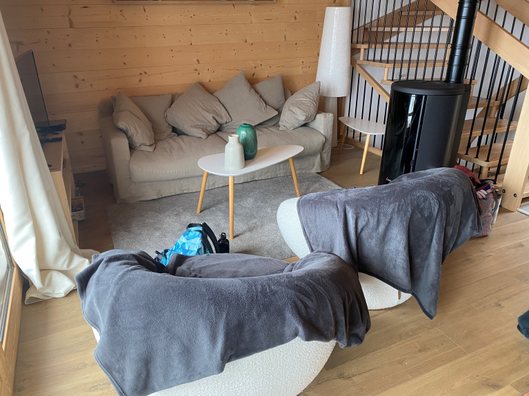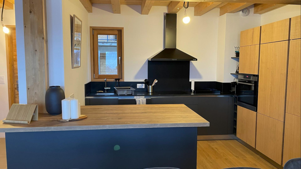 Equipped with underfloor heating, towel dryer and pellet stove for a warm atmosphere when returning from skiing.